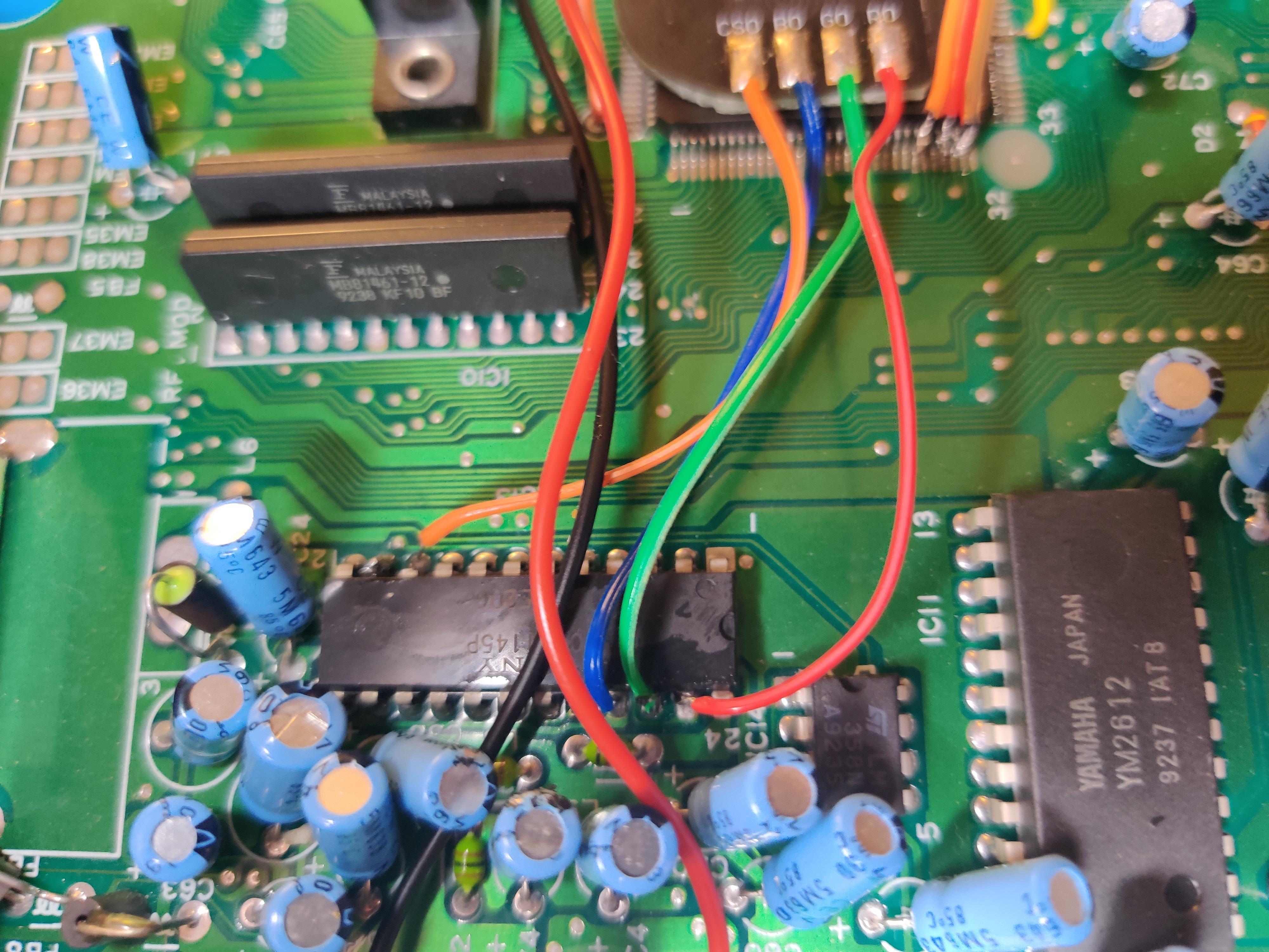 I DID snip pin 11 accidently on CXA1145 (swore I checked that was the correct pin to SYNC on the DIN, and the retroRGB guide says pin 11, but apparently its pin 10), but I patched that back, and the connection looks good (and as far as I can tell from pinouts, it doesn’t do anything). I also had the 5.6k pull-up in there originally, but removed it just to see if that was an issue or not, but same result.