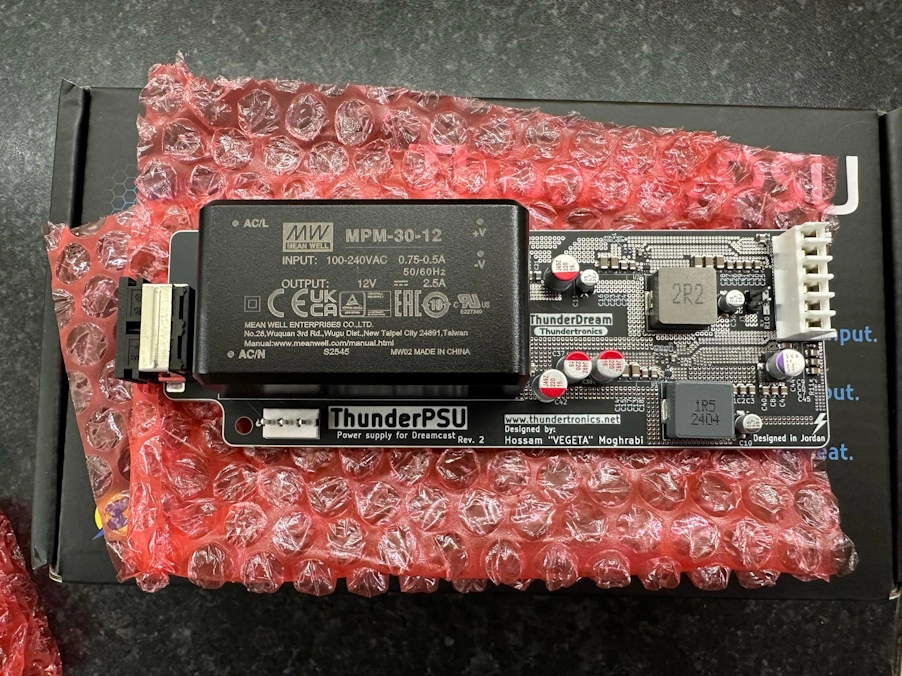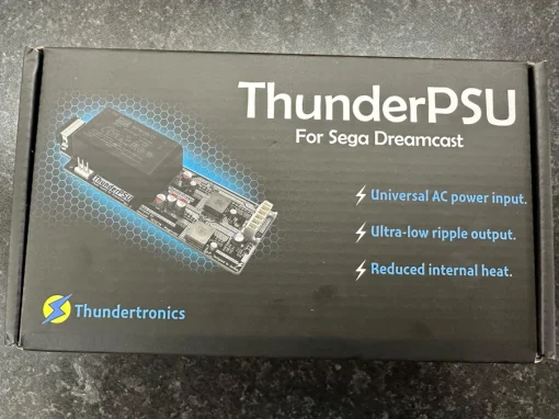 ThunderPSU (also known as ThunderDream) is a replacement power supply unit for the Sega Dreamcast console from Thundertronics.net. There are several after-market PSUs available for the Dreamcast, most use a modified PicoPSU and an external power supply. These devices vary in quality but, generally, fall short of the reliability and noise free performance of the stock power supply. Not so the ThunderPSU; this is a professionally made universal, internal Dreamcast power supply. We are confident that this product is the best replacement power supply on the market for this console, easily outperforming other 3rd party PSUs and even the original stock unit.